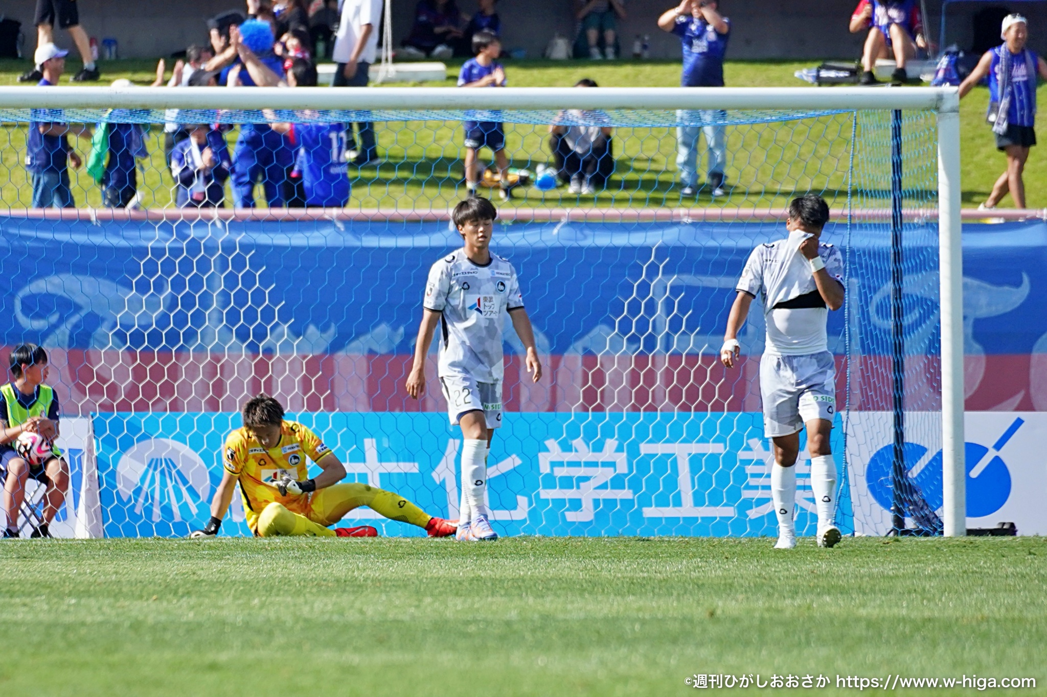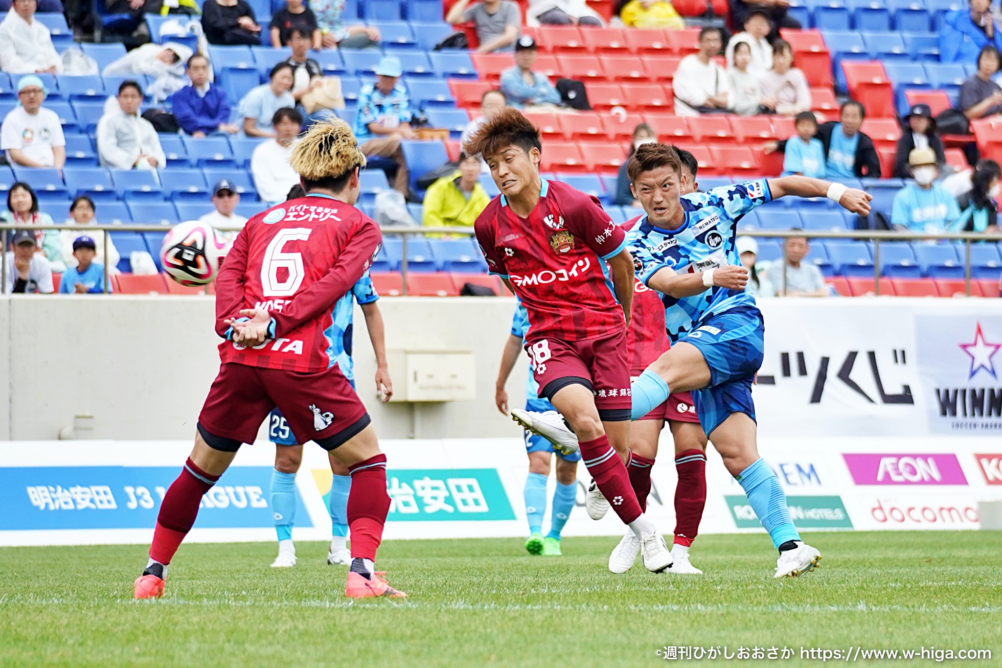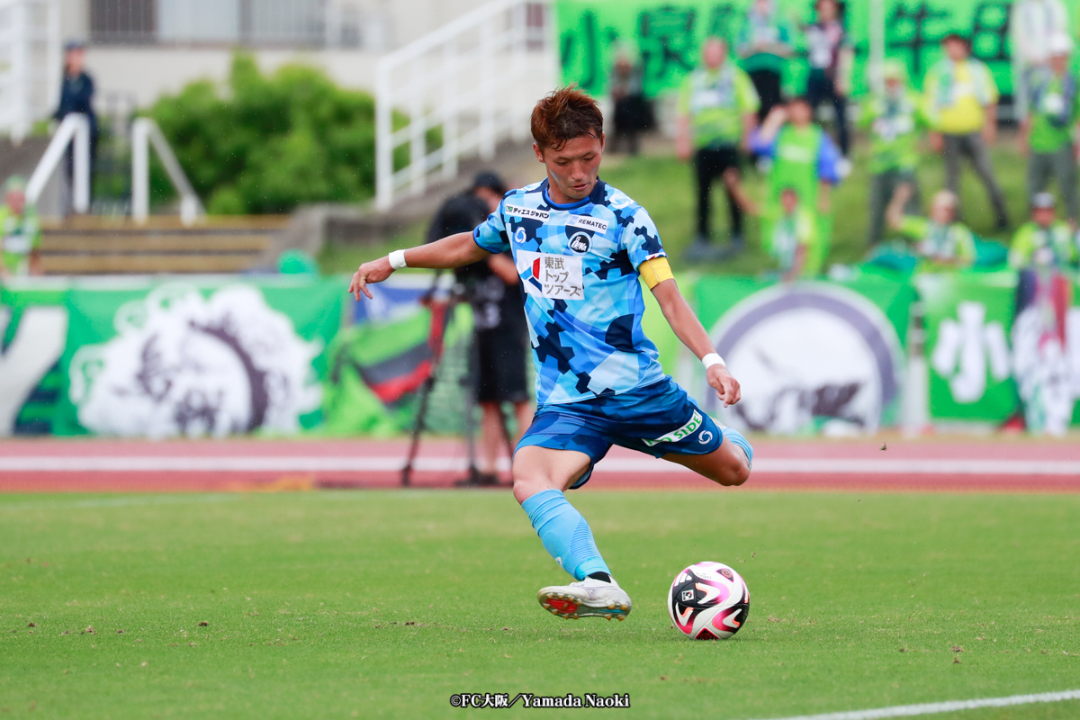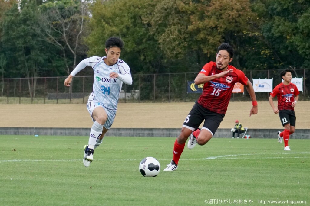 負傷していたDF秋山拓也が復帰し、スタメンに名を連ねた。試合の主導権を握るのはFC大阪。 7分、その復帰した秋山がフリーキックからのボールをゴールに押し込んで幸先よく先制する。さらに11分には、MF増田隼司からのパスをMF久保吏久斗がヒールシュートでゴールに流し込んで2-0とリードを広げて試合を折り返す。