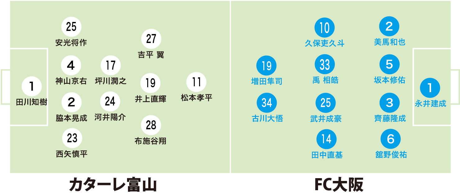 リーグ戦前半最後のゲームとなった前節のテゲバジャーロ宮崎戦は花園で4-1と快勝。その勢いのまま、後半戦1戦目となるこの試合で勝利し、ホームで連勝といきたいところだ。ただ、昨季の対戦成績は0勝2敗。また、今季前半戦のアウェイでも0-2で敗れており、J参入後FC大阪は富山から勝利を上げられていない。