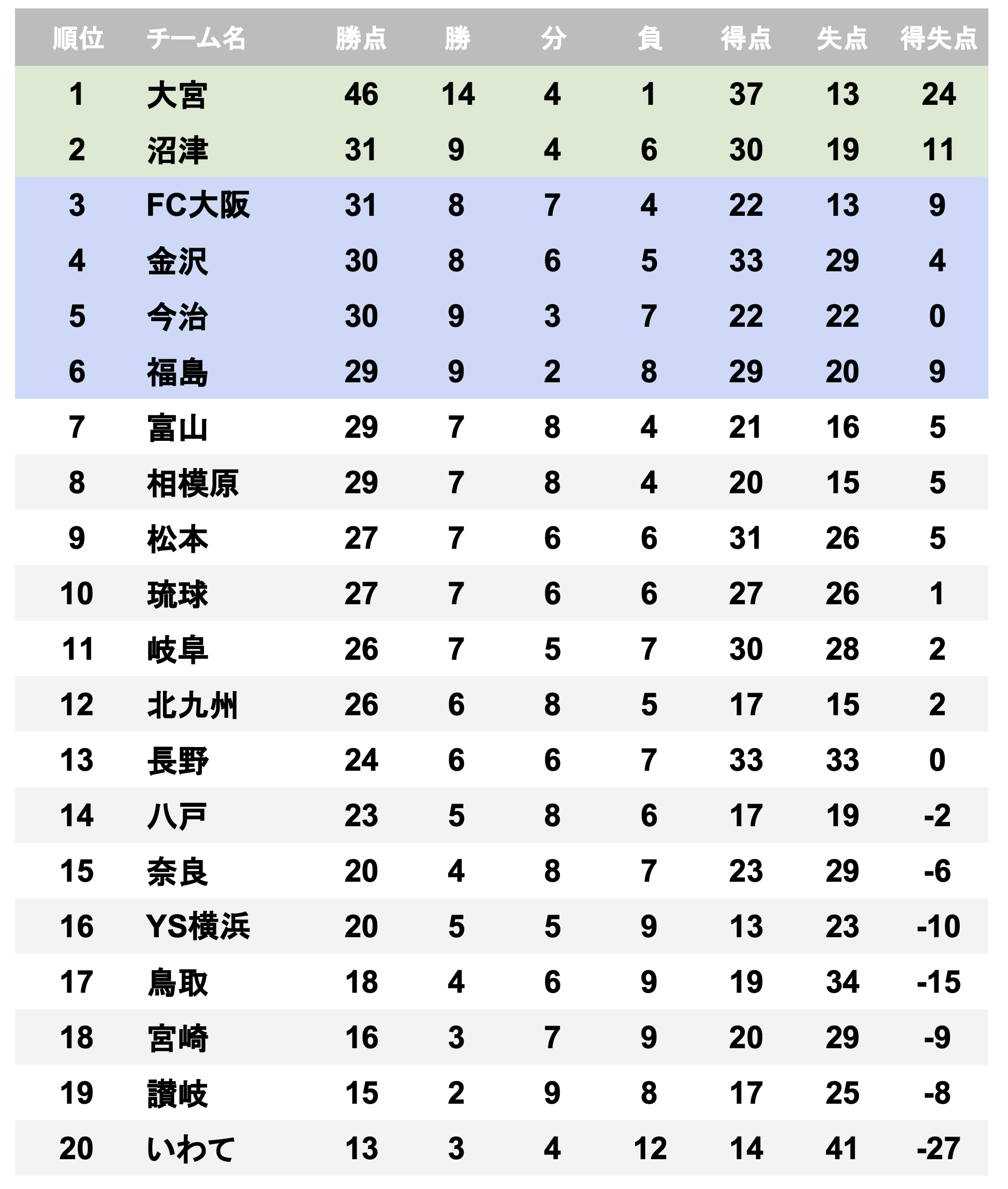 | 19 | 6/29(土) | 17:00 | ◯ 4-1 | テゲバジャーロ宮崎 | 東大阪市花園ラグビー場 |
