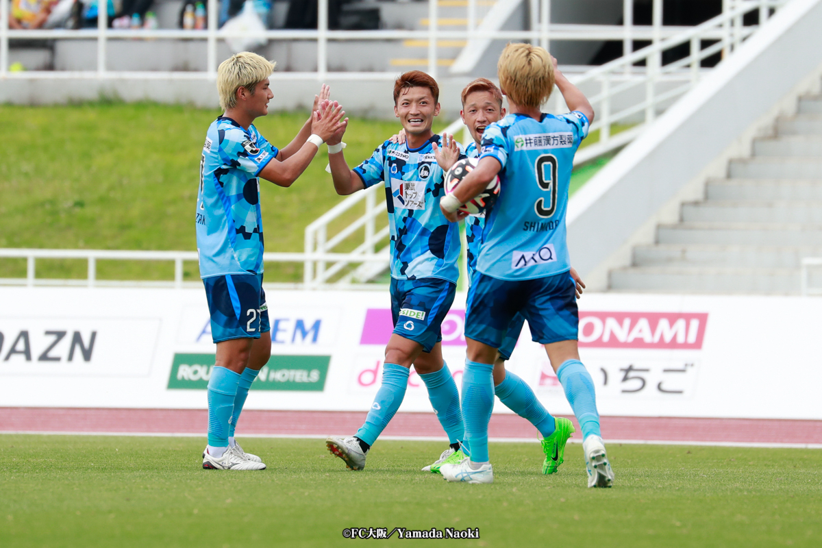負傷していたDF秋山拓也が復帰し、スタメンに名を連ねた。試合の主導権を握るのはFC大阪。 7分、その復帰した秋山がフリーキックからのボールをゴールに押し込んで幸先よく先制する。さらに11分には、MF増田隼司からのパスをMF久保吏久斗がヒールシュートでゴールに流し込んで2-0とリードを広げて試合を折り返す。