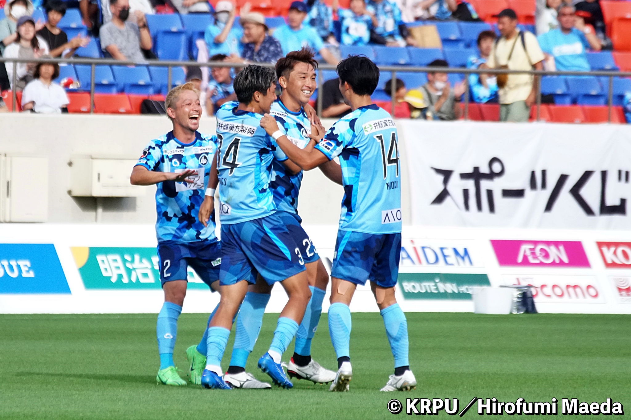 後半に入っても勢いは止まらず。49分にペナルティーエリア内でFW古川大悟が倒されPKを獲得。このPKを古川が自ら決め、3-0とする。さらに64分にはスーパーゴールが生まれる。GK永井建成からのロングボールをMF久保がダイレクトで折り返すと、このボールをMF田中直基がダイレクトボレーで相手ゴールに叩き込む。まるで漫画「シュート!」の必殺技「トリプルカウンターアタック」の再現弾だった。なお、この試合は「近大Day」として開催されており、田中は同大学OB。スタンドも大きく沸いた。